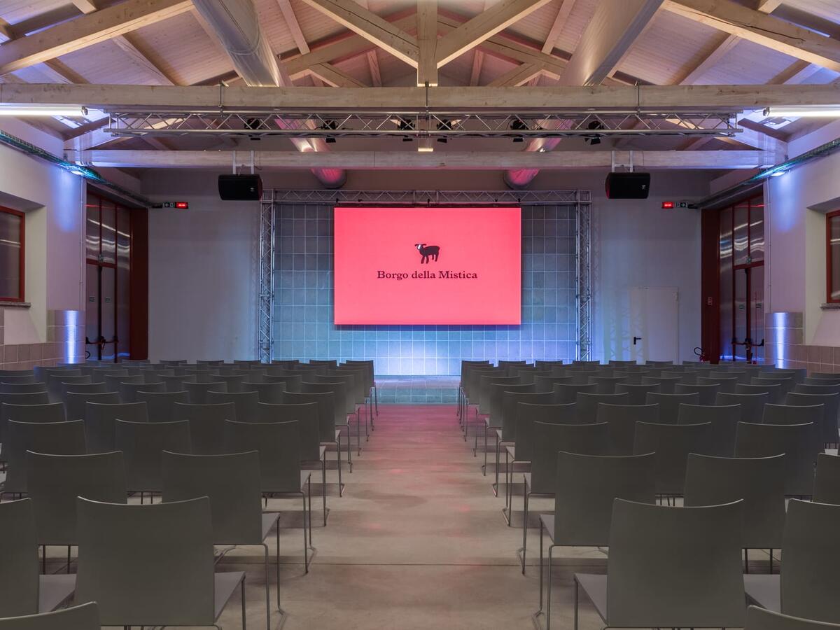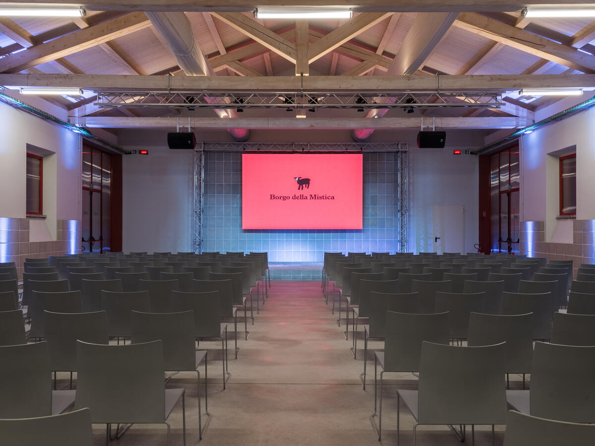 La possibilità di accesso diretto alle sala per allestimenti scenografici, permette la massima libertà creativa e operativa; la combinazione di un ambiente immerso nella natura con infrastrutture congressuali all'avanguardia rende il Borgo della Mistica una location ideale per eventi che cercano un equilibrio tra professionalità, comfort e natura.