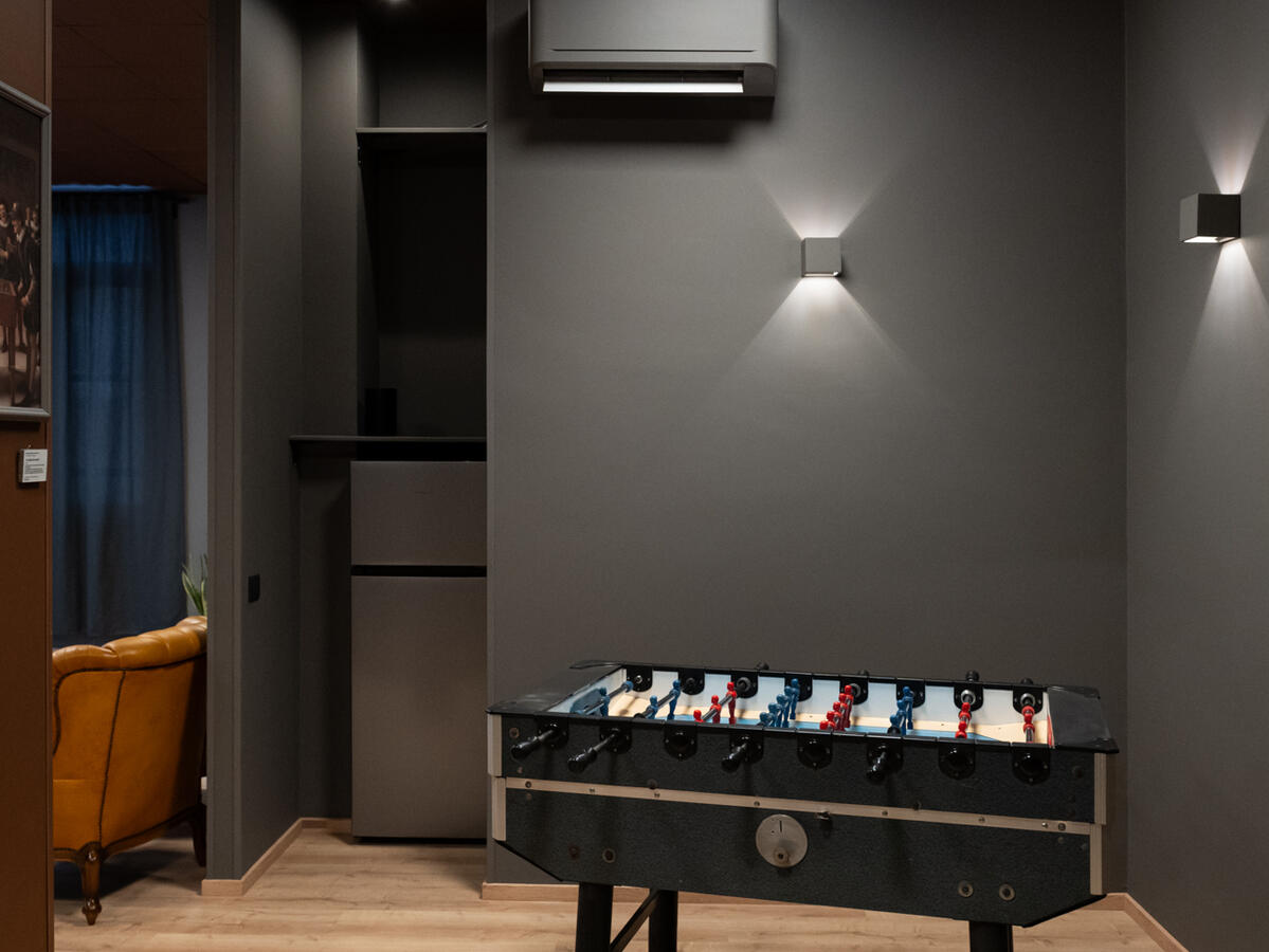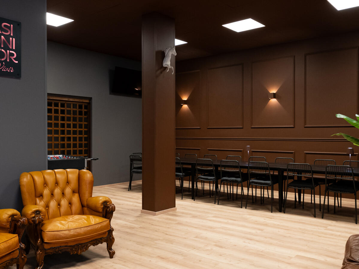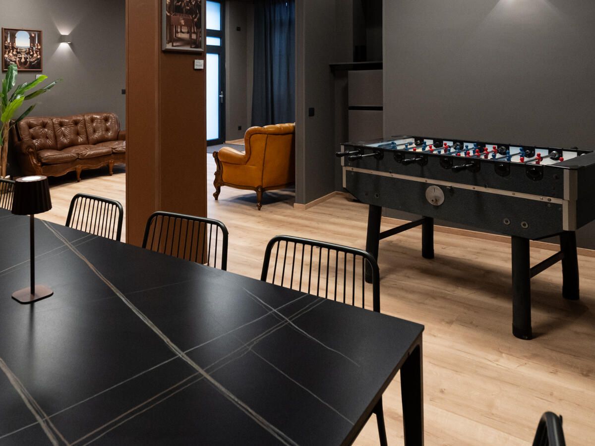 Area "Para Vivir" (70mq): Uno spazio relax e operativo dotato di grande tavolo (fino a 20 posti a sedere), divani, Smart TV 55'', proiettore 4K e Wi-Fi ad alta velocità. Perfetta per meeting, workshop, brainstorming o semplicemente per rilassarsi con il nostro biliardino e giochi da tavolo.