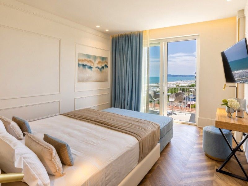 Le sue 70 camere con vista mare, tutte dotate di balcone privato, offrono ambienti raffinati e accoglienti, arricchiti da comfort di livello superiore: cassetta di sicurezza, telefono diretto, climatizzazione autonoma, Wi-Fi, Tv led con Sky, minibar e ricco courtesy set.