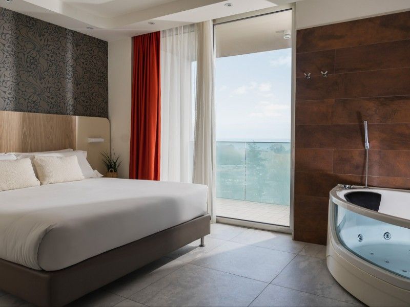 Il nostro hotel offre cinque diverse tipologie di camere, tutte dotate di ampi balconi per godere della fresca brezza marina. Ogni stanza è arredata con letti king size, aria condizionata autonoma, Smart TV, minibar e cassaforte personale. Il bagno privato, con vasca idromassaggio o doccia, è corredato di set di cortesia gratuiti. L'insonorizzazione garantisce un riposo tranquillo.