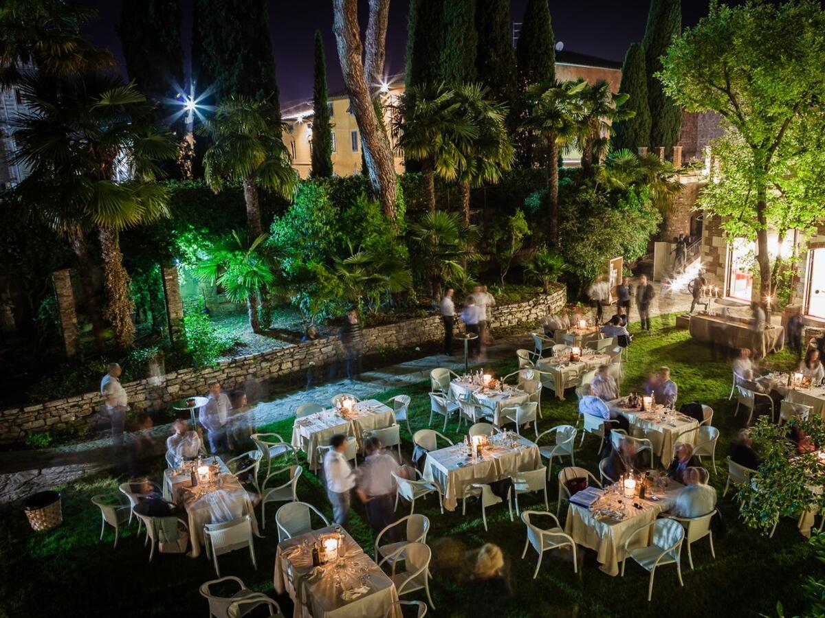 Il giardino superiore, circondato dalle antiche mura del 1155, crea un'oasi verde dove organizzare incontri all'aperto in completo relax. Il giardino inferiore, di 250 metri quadri, arricchito da statue, alberi e fiori, permette di ospitare eventi fino a 150 persone, mantenendo un'atmosfera esclusiva e naturalistica.