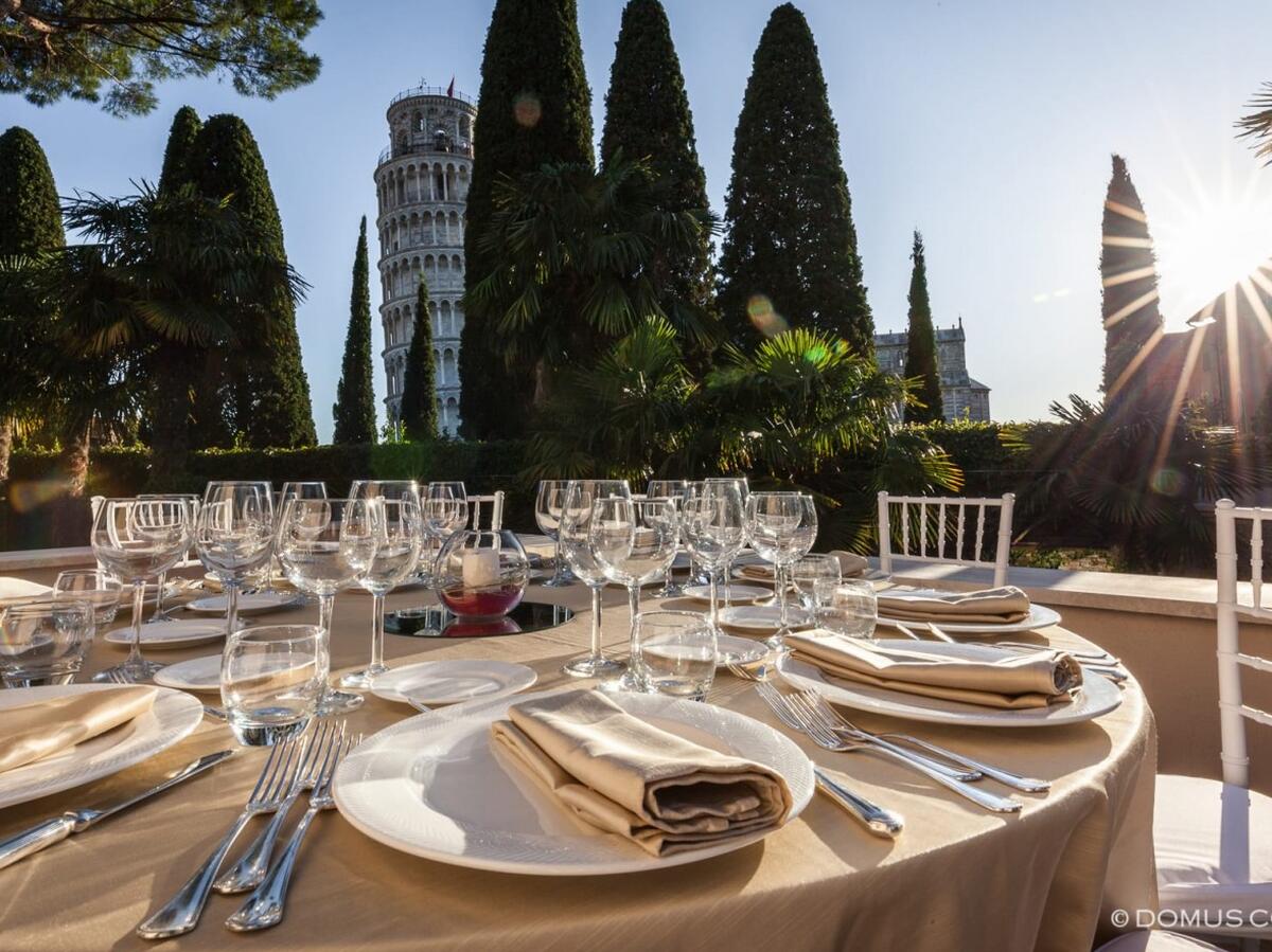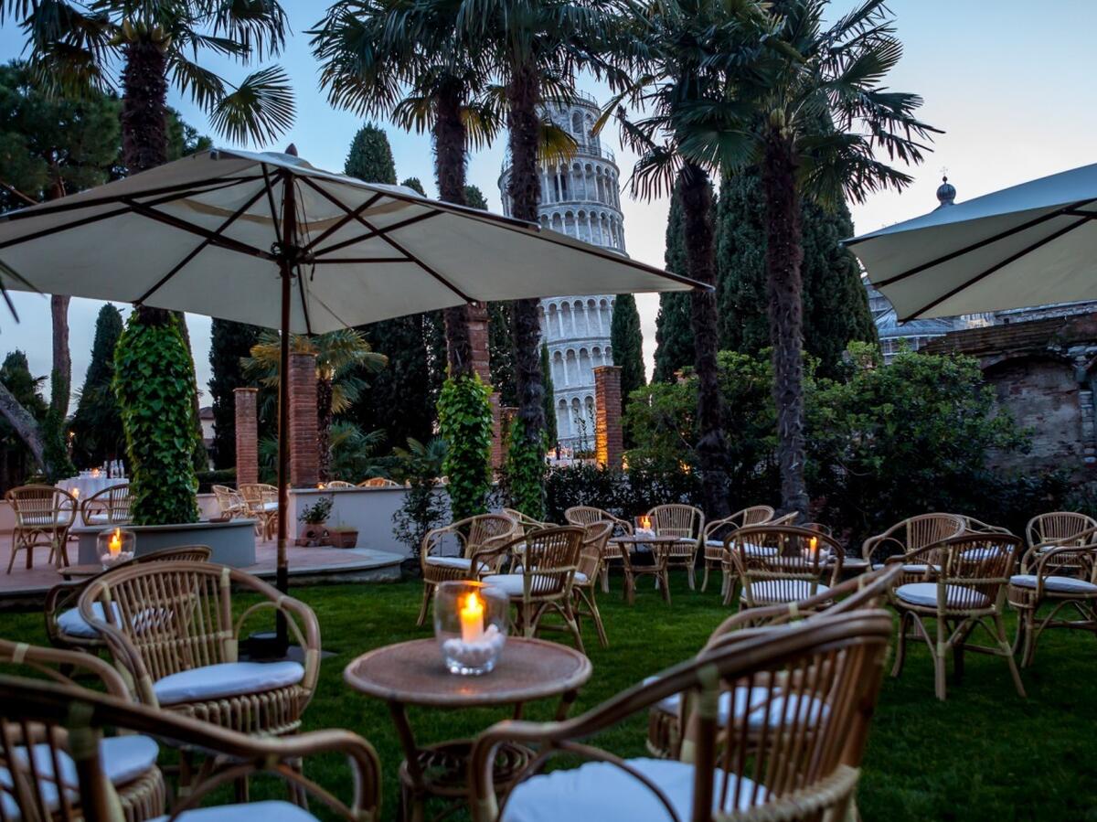 Gli spazi esterni sono particolarmente suggestivi: due giardini silenziosi e curati, immersi nel contesto medievale di Pisa, offrono un ambiente ideale per cene di gala, cocktail e eventi culturali e privati. In particolare, la terrazza al primo piano si affaccia direttamente sulla celebre Piazza dei Miracoli, offrendo una vista privilegiata sulla Torre Pendente, simbolo della città.